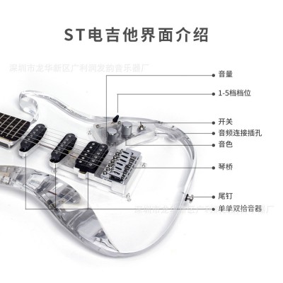 首页 > 母婴 / 玩具 / 乐器 > 乐器 > 吉他 > 新款水晶单单双ST电吉他透明亚克力入门级炫酷摇滚实木电吉他