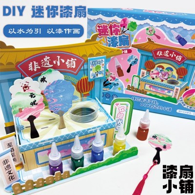 漆扇小铺儿童手工diy迷你漆扇小铺材料包非遗玩具自制非遗文化漆扇女生过家家玩具