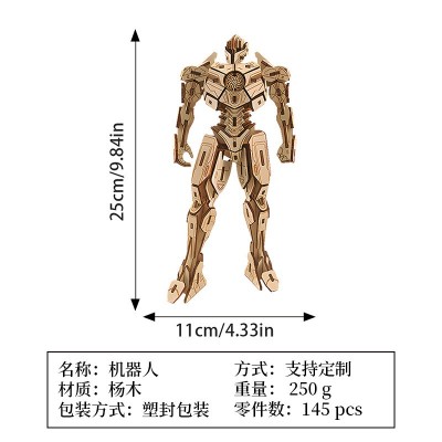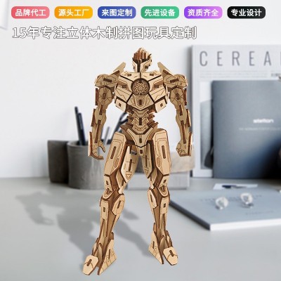 爆款木制拼图玩具机器人模型3d立体拼图定制diy手工益智玩具