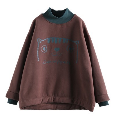 【绿素棉】2020秋冬 宽松休闲加绒大码 卡通高领卫衣女慵懒风上衣