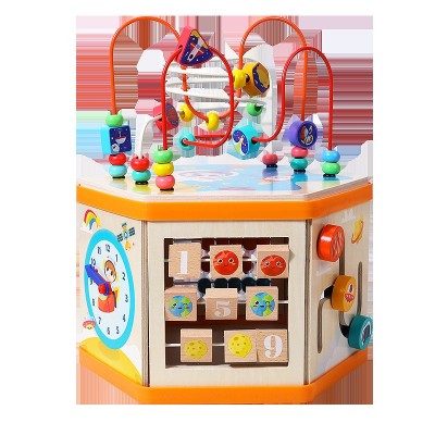 木丸子多功能大号六角绕珠百宝箱玩具六面体益智学习串珠宝宝玩具