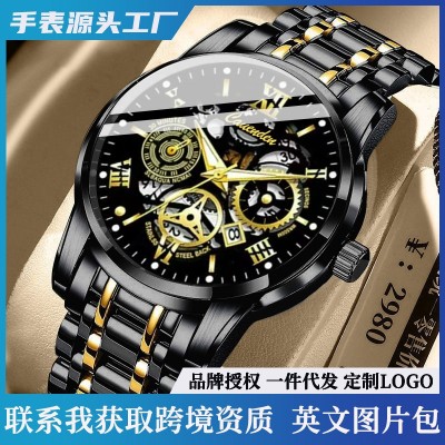 防水夜光镂空男士手表钢带款石英表直播外贸爆款手表 男士手表