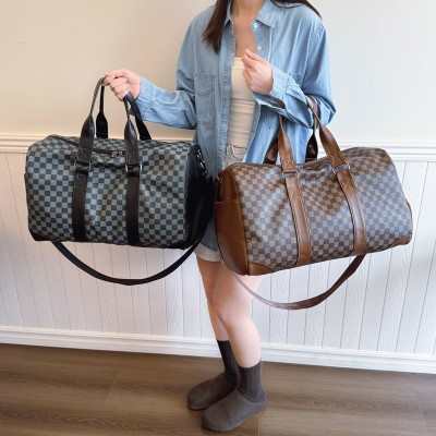 新款多功能行李包大容量户外运动健身包时尚格子时尚质感旅行包