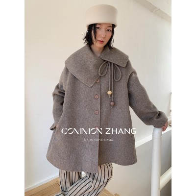 秋冬大翻领羊毛双面尼大衣女宽松休闲减龄毛呢外套