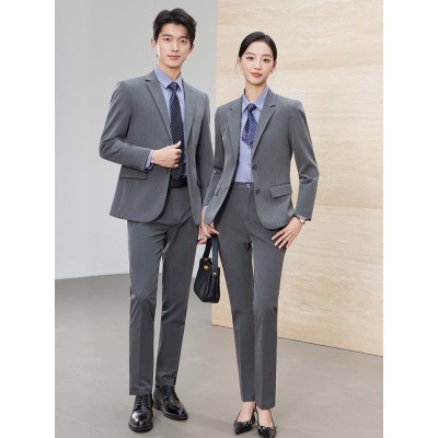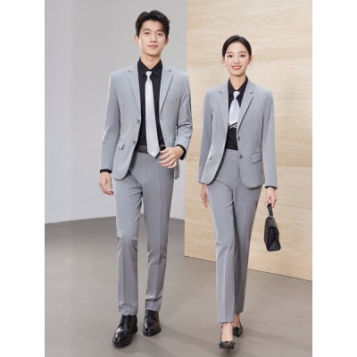 职业装高级感灰色商务酒店经理西装外套男女同款西服套装4s店工装