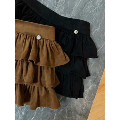 秋冬新轻奢名媛气质百搭高腰半身裙裤裙木耳边蓬蓬裙蛋糕裙